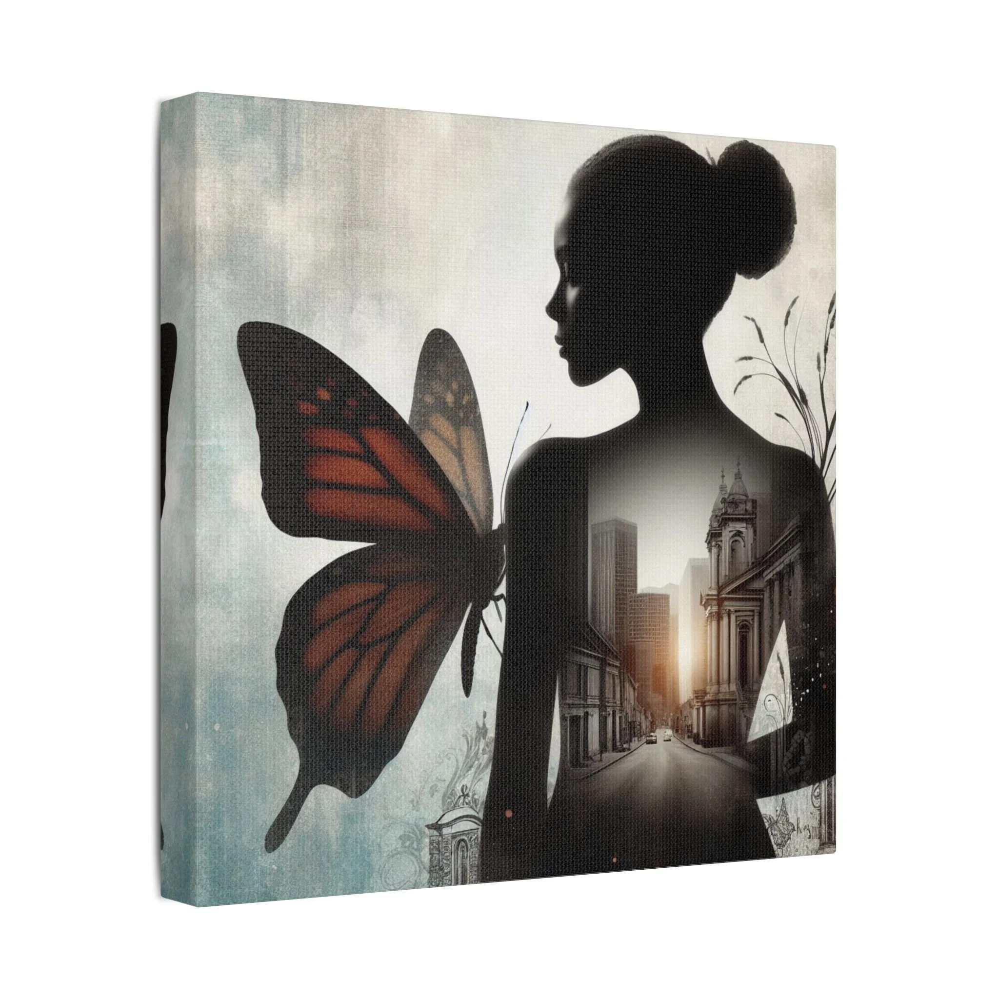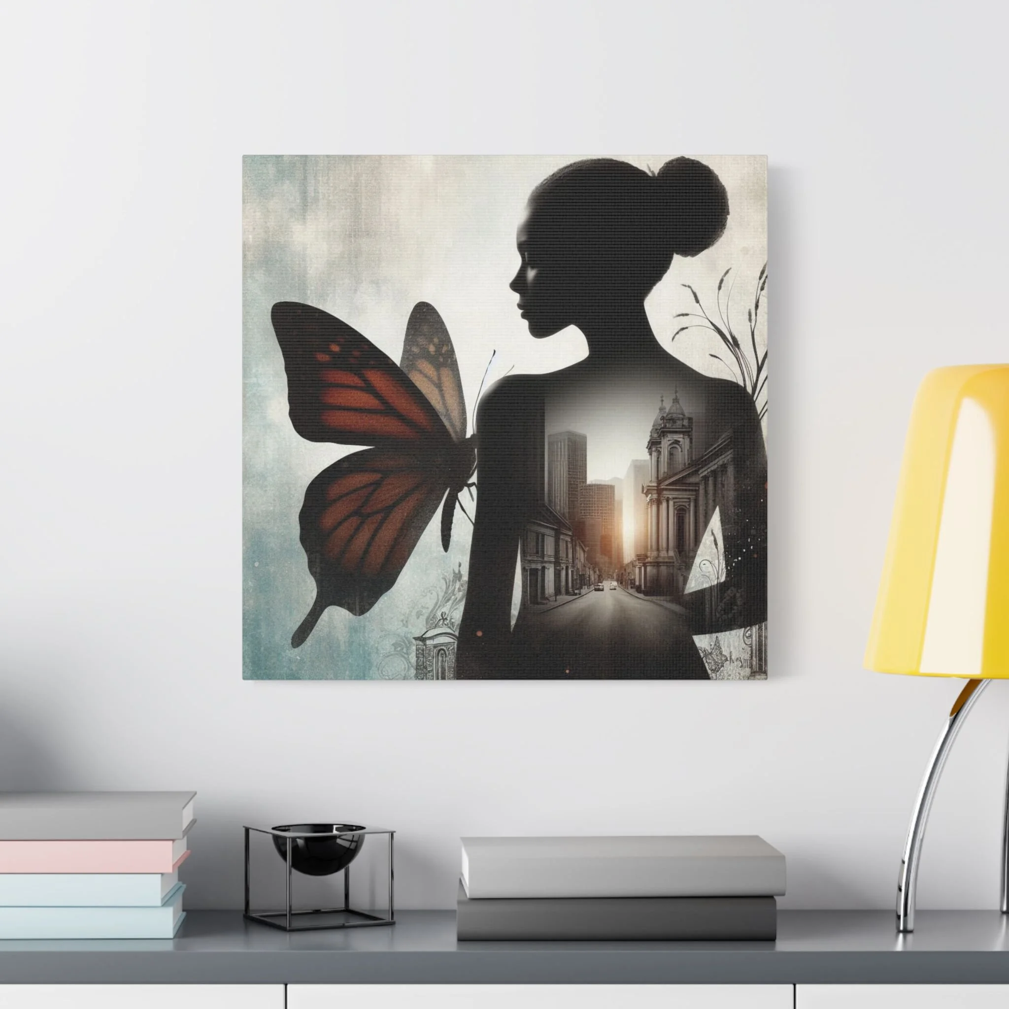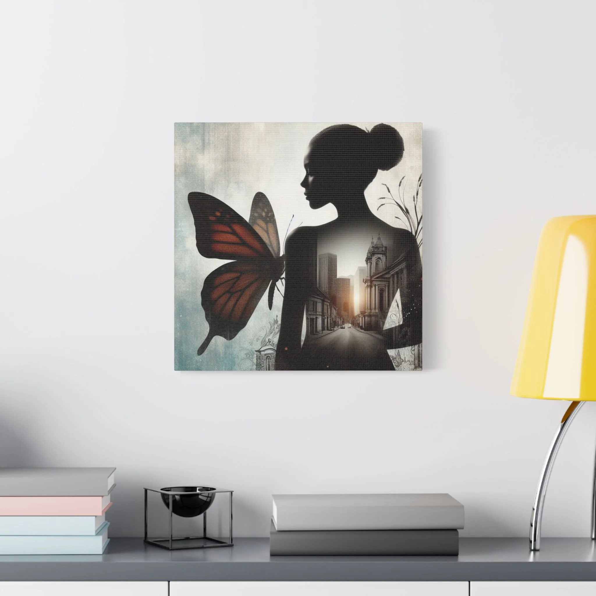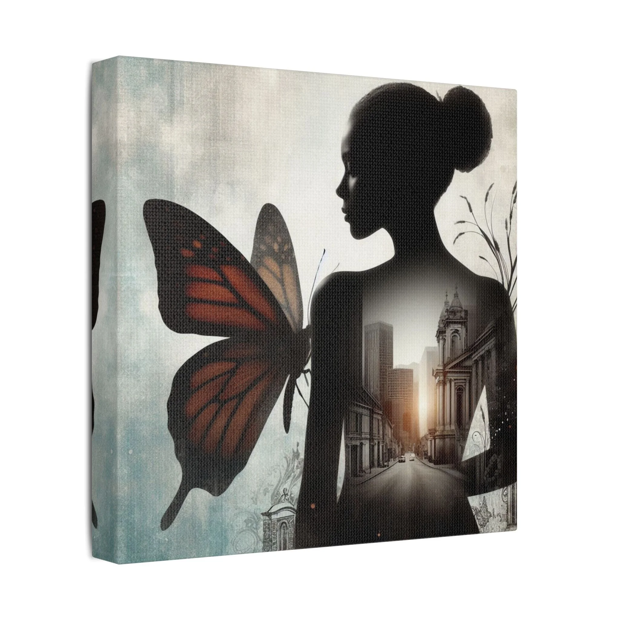 Square Pillow | Memory Calls Back Edition: Emergence — Black Woman Butterfly Silhouette