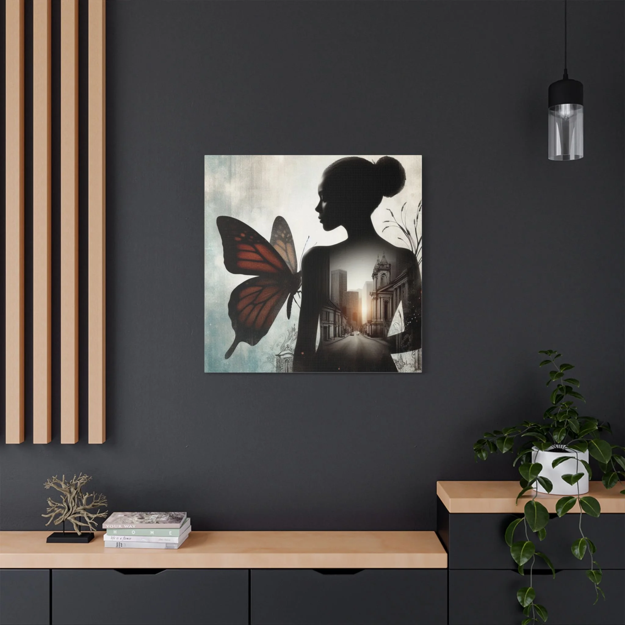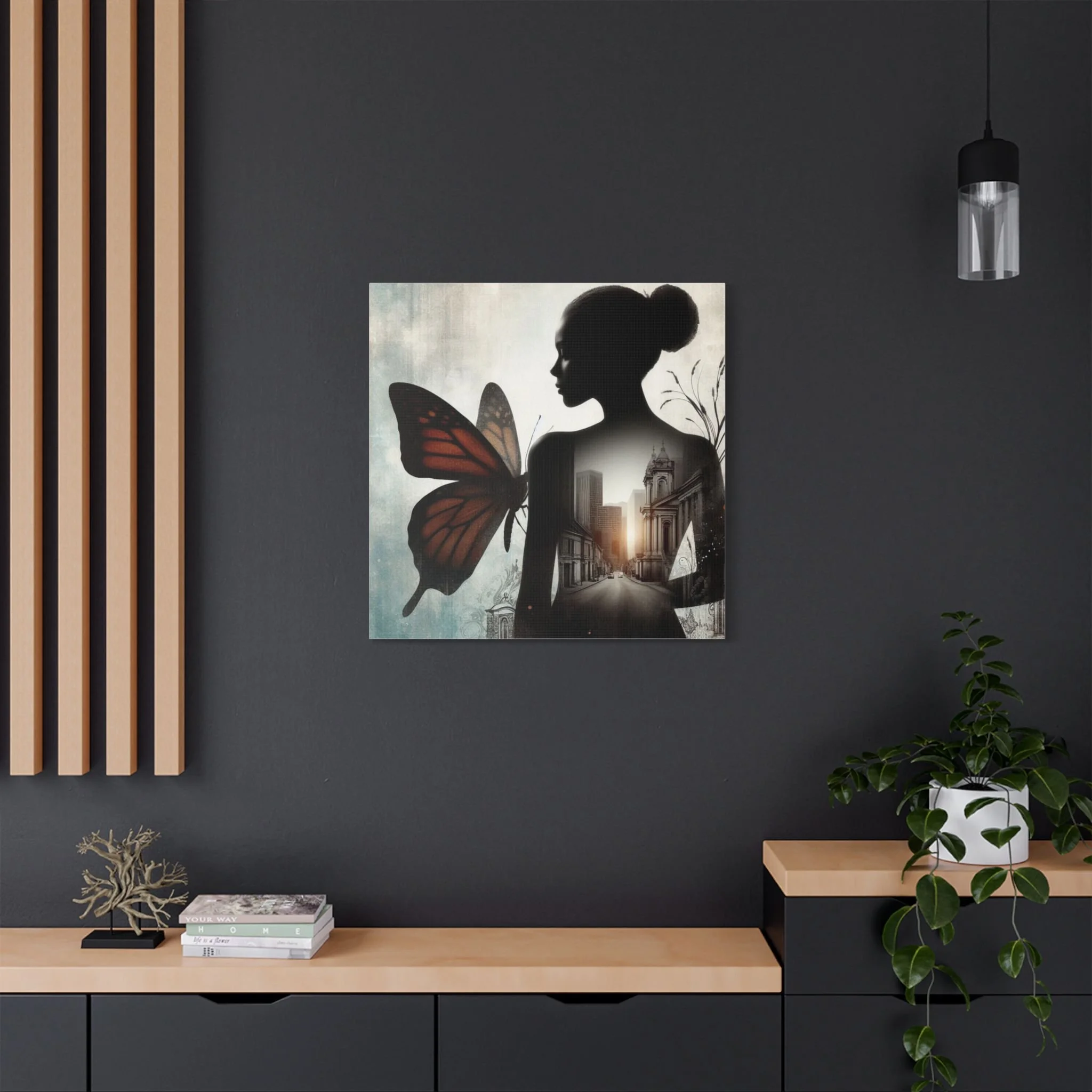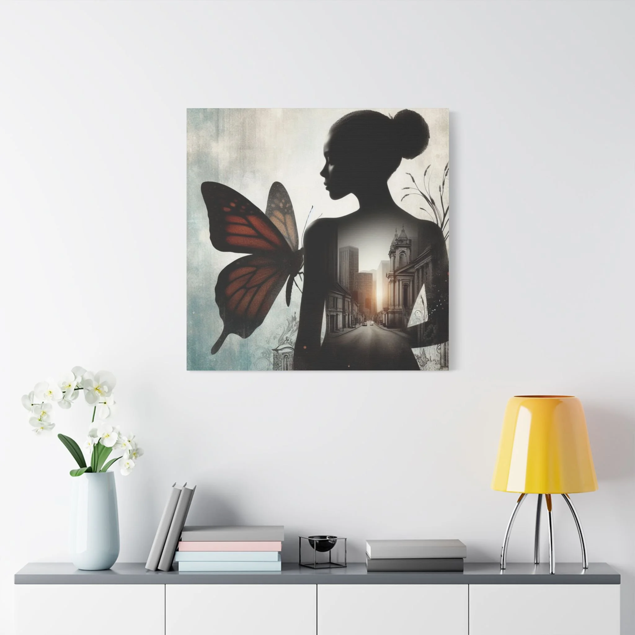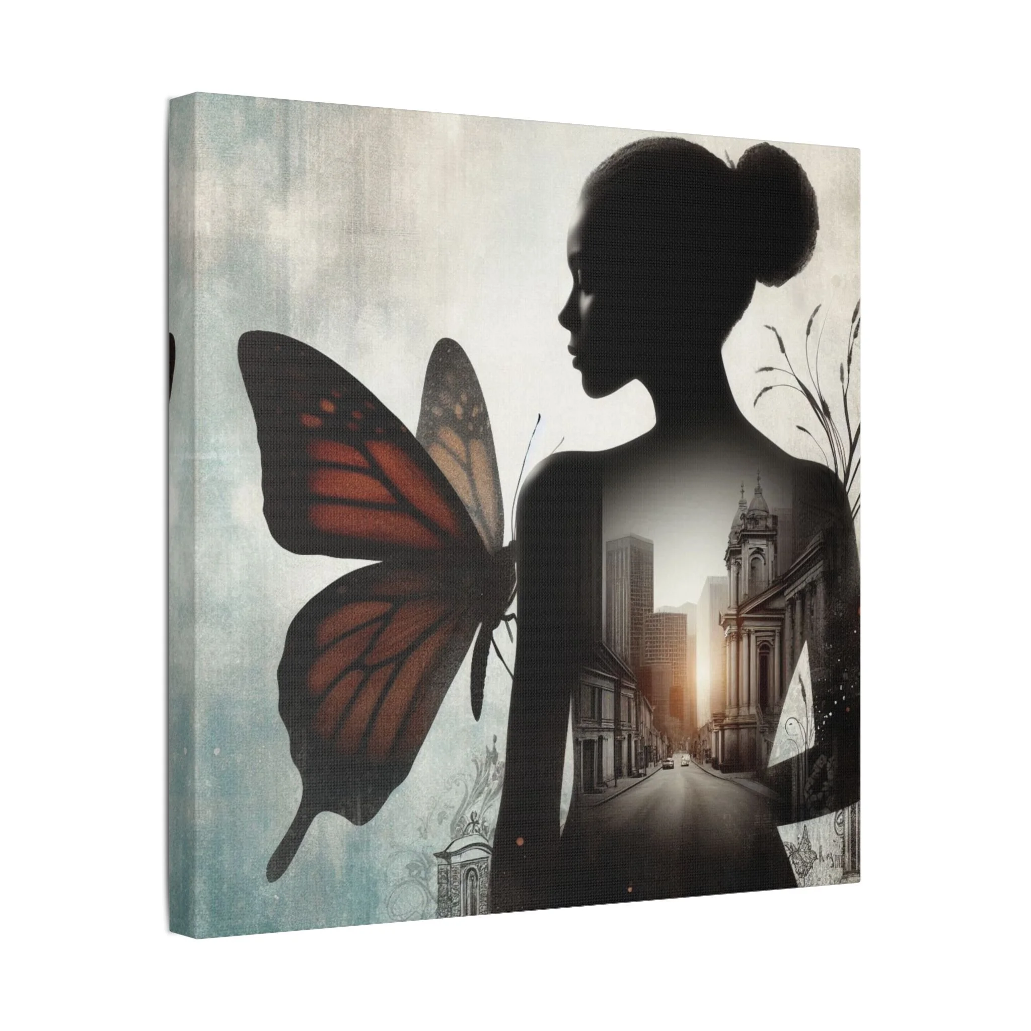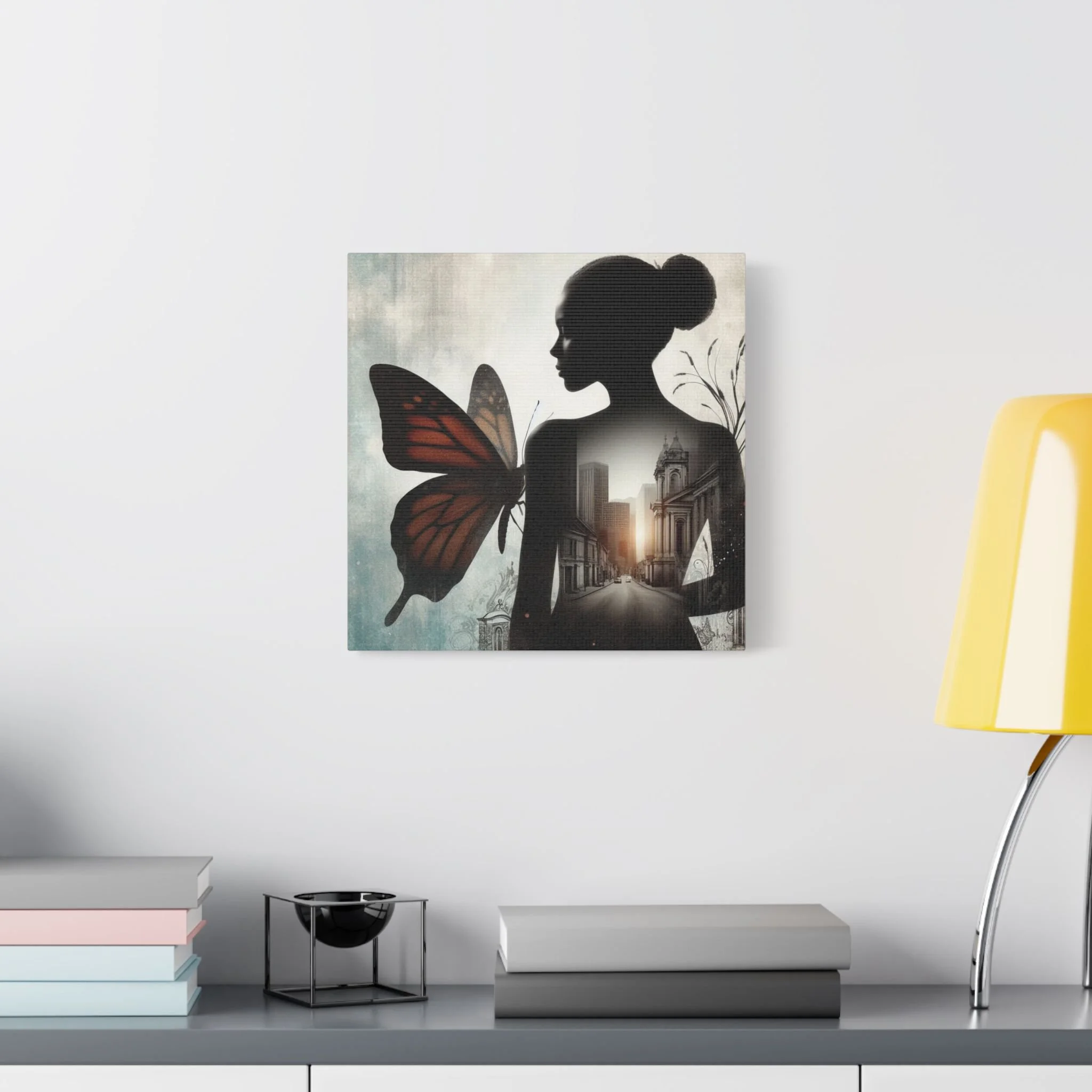 Square Pillow | Memory Calls Back Edition: Emergence — Black Woman Butterfly Silhouette