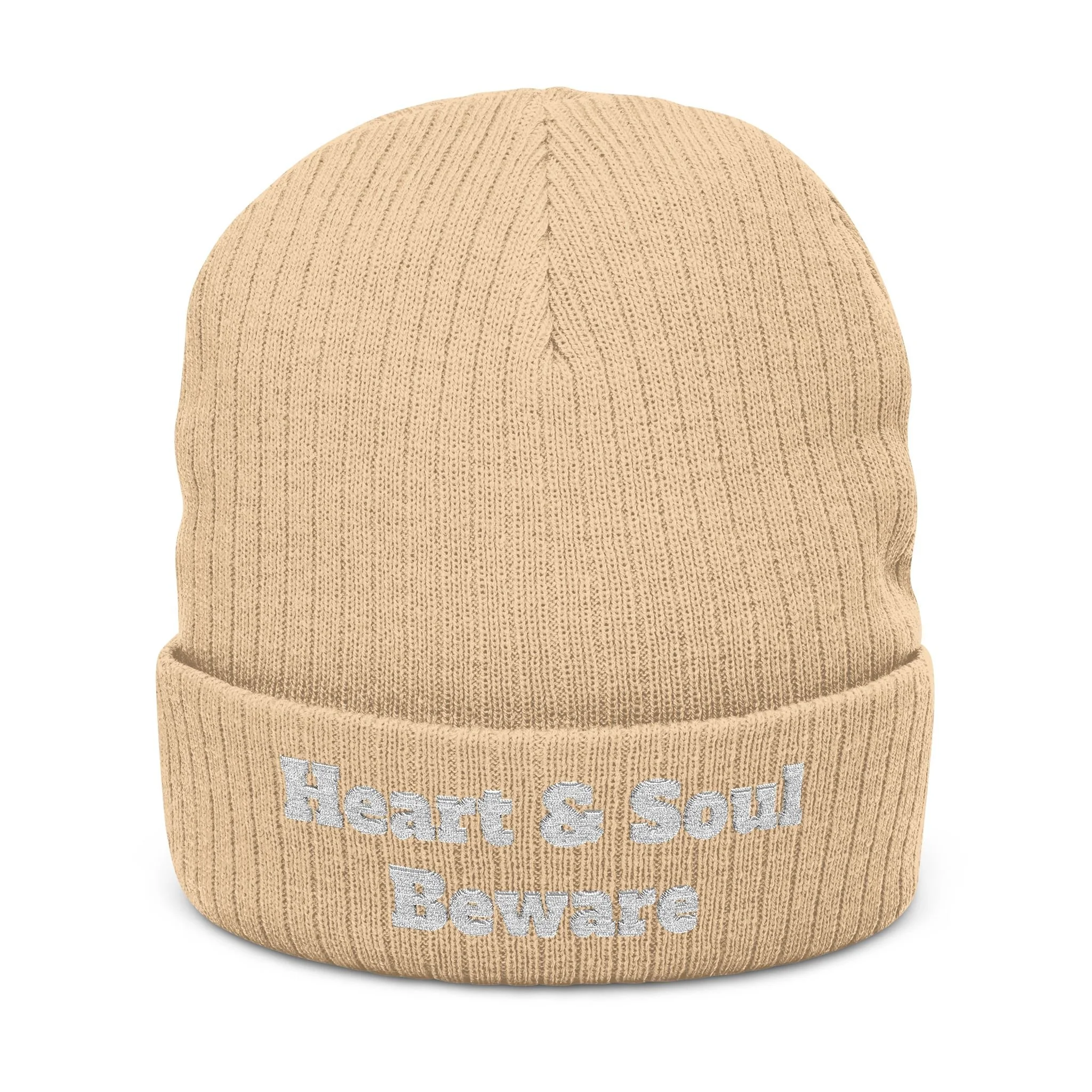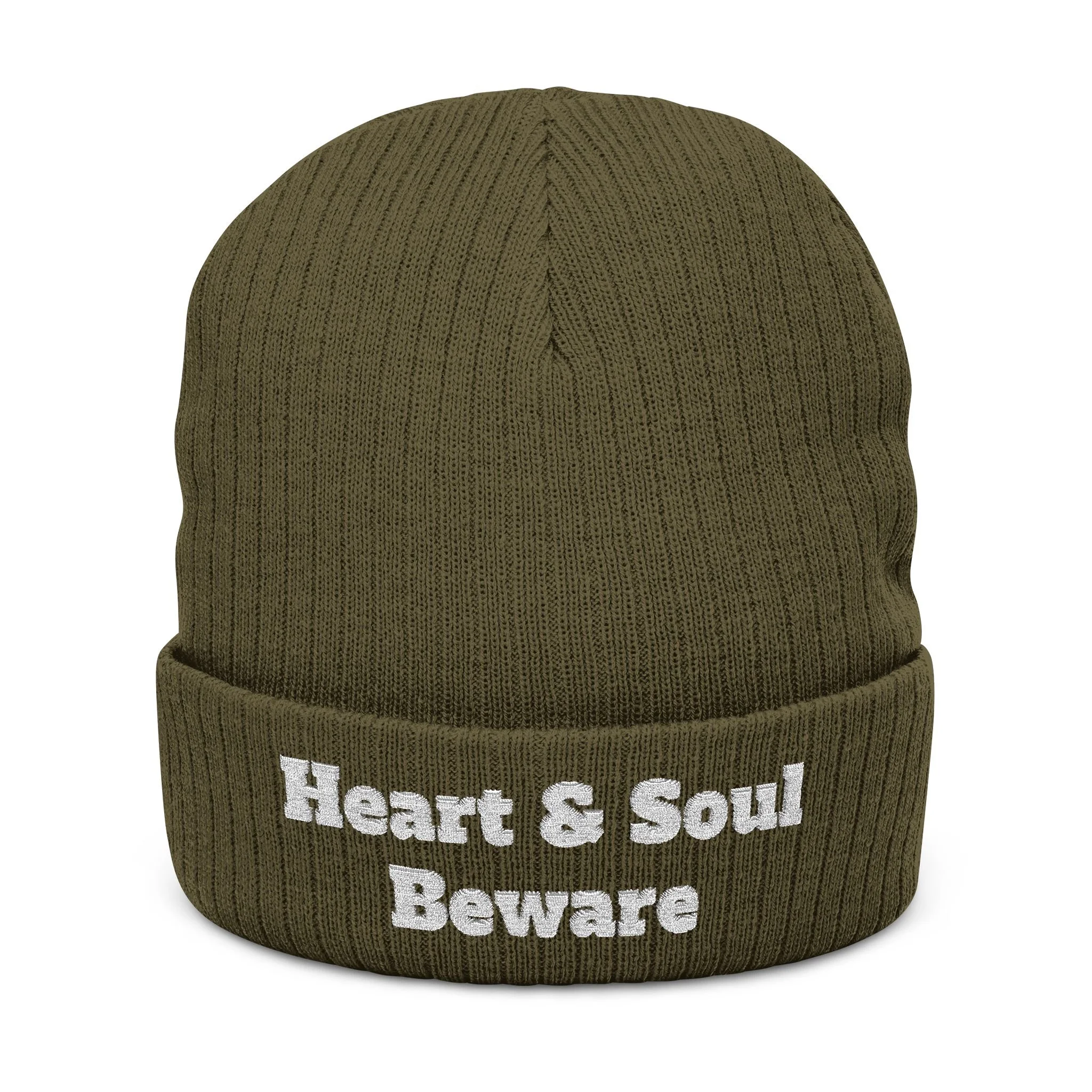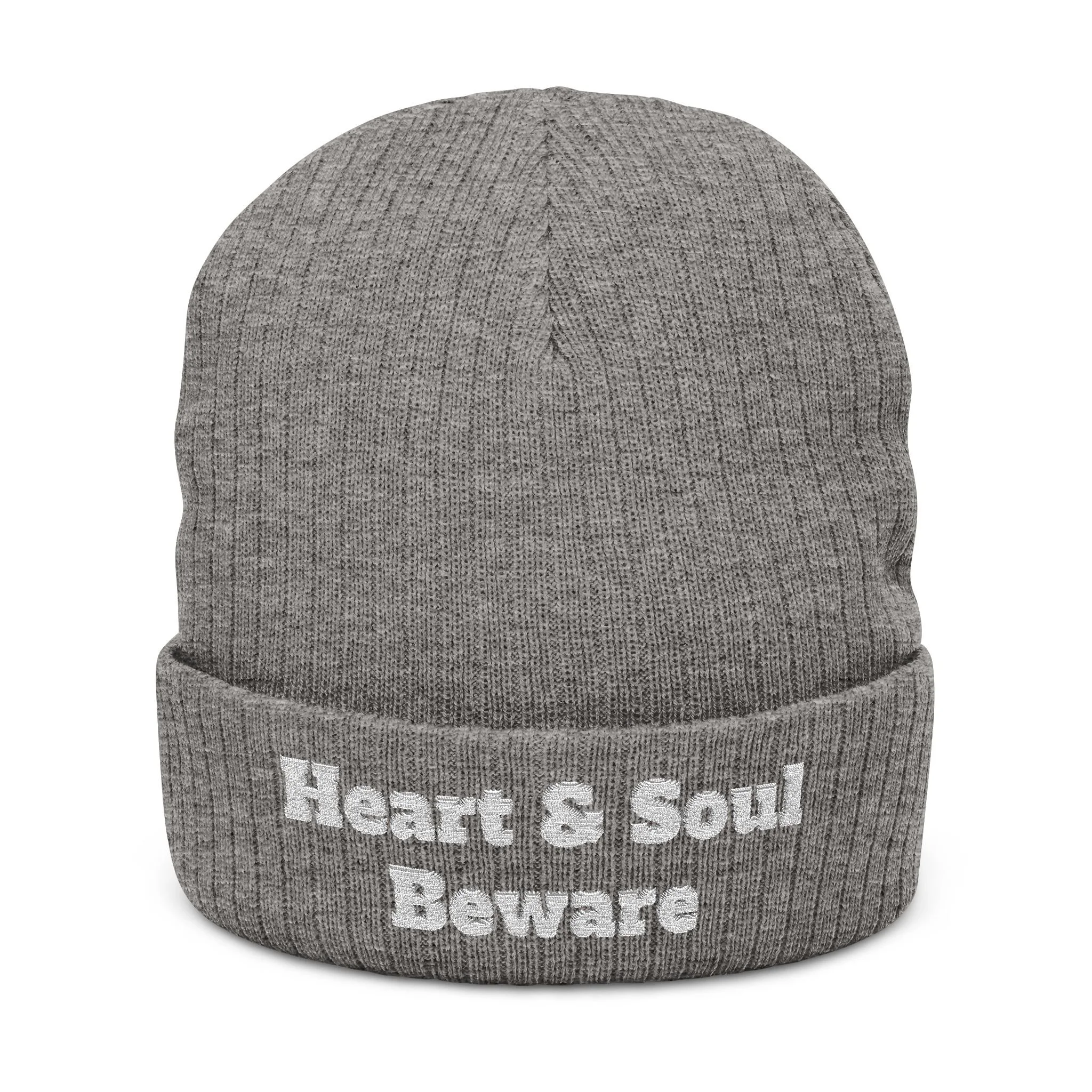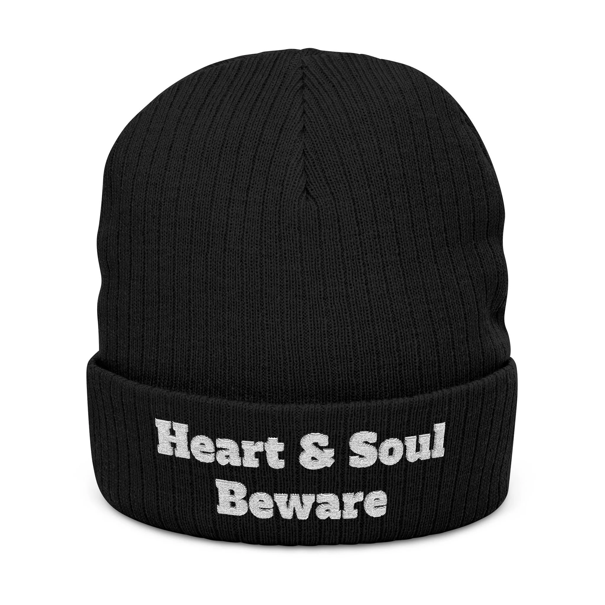 Embroidered Ribbed Beanie | Heart & Soul Beware Edition — Black