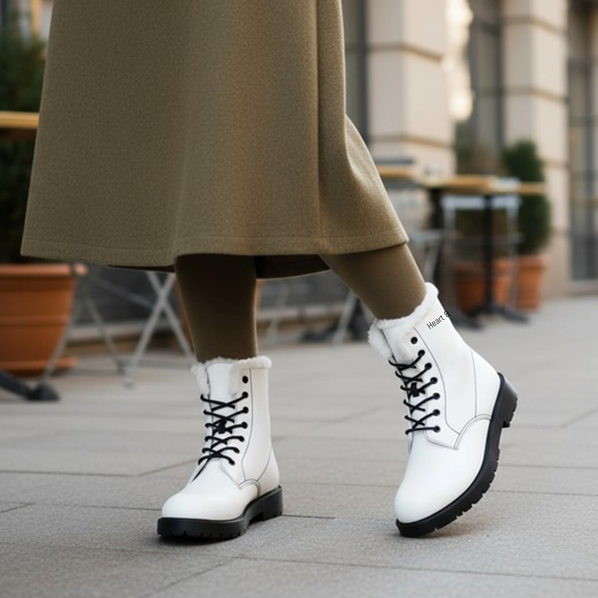 Pair these white boots with neutral tones or winter layers for a refined look. Combine with denim, a knit sweater, or your favorite wool coat for modern balance—proof that simplicity can speak volumes.